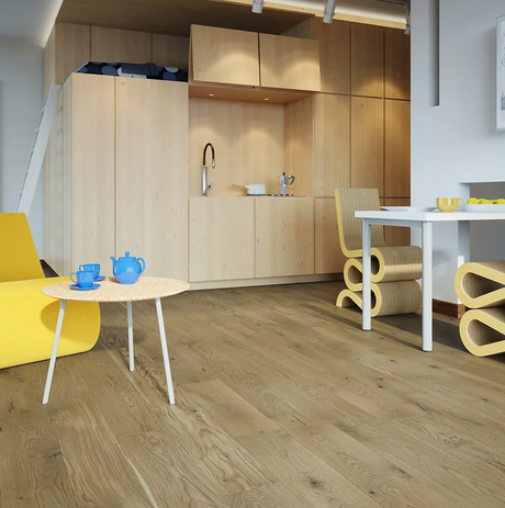 Müller Graff engineered hardwood flooring can be installed throughout your home or office, providing a durable and seamless wood finish to any space. The planks can also be cut and arranged according to your taste to produce versatile and beautiful patterns. If you want to warm your wooden floor with an underfloor radiant heating system, Müller Graff hardwood flooring can be laid on top of the pipes, allowing easy access for any necessary maintenance.